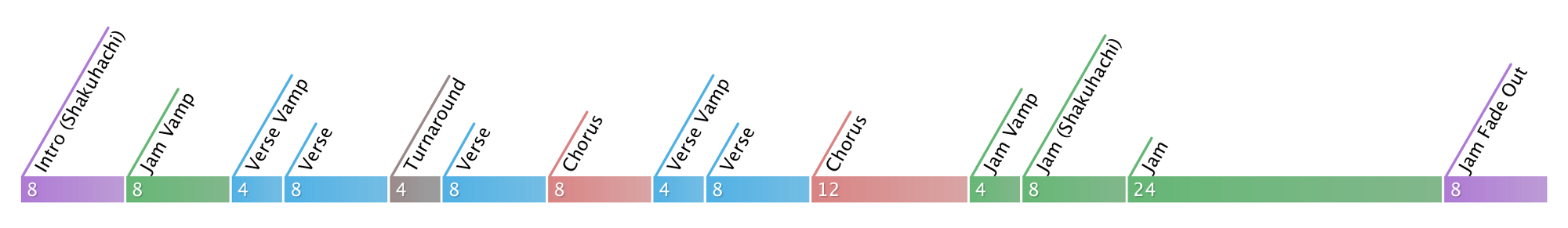 Right out of the gate we are treated to the iconic Shakuhachi sample to set the mood.³ This section lasts for 17 seconds, which is daring. The spell is broken by some rad 80s horns, which drop us into 12 bars of vamping, first on the jam, then the verse. We don’t even get to the first verse until 45 seconds in.